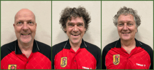 In hun eerste wedstrijd boekten (vlnr) Hans, Rob en Theo thuis een 8-2 overwinning op NON-1.