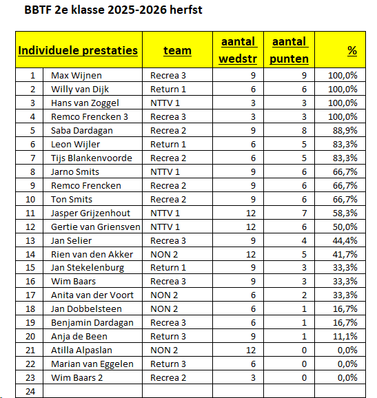 De individuele prestaties op deze pagina worden voor publicatie op deze website aangeleverd door Gertie van Griensven van NTTV.