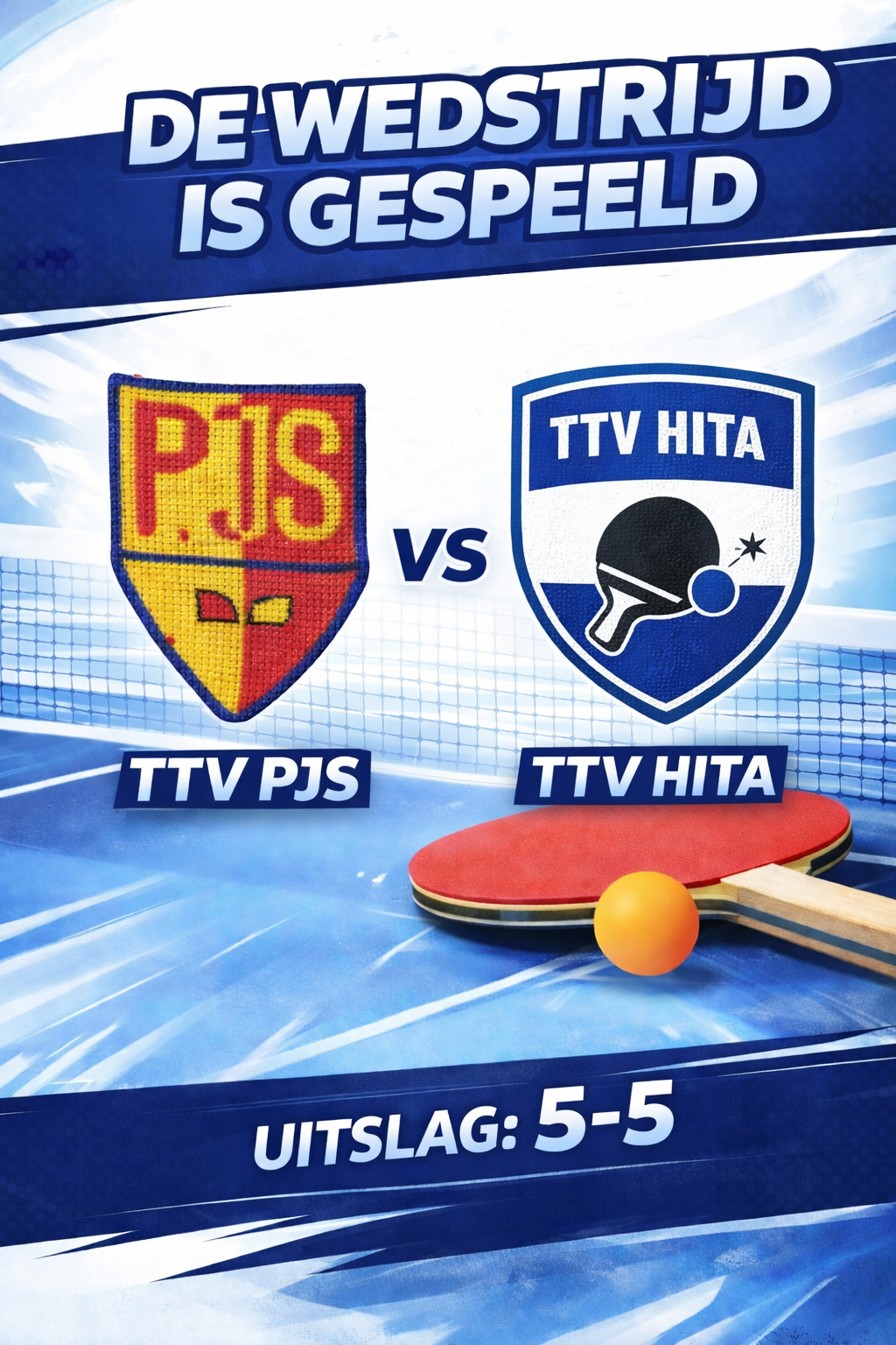 Kortom: een gezellige avond tafeltennis, een eerlijke puntendeling en genoeg stof om nog lang over na te praten. Volgende keer misschien toch die zesde punt pakken… maar dan moet eerst iemand onthouden hoe dat precies moet.